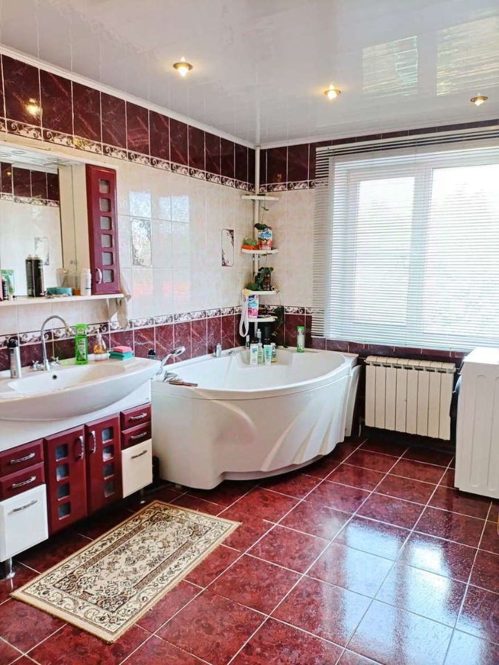 Продается теплый, светлый, уютный дом с продуманной и практичной планировкой. В доме: - шесть жилых комнат, - четыре санузла, - две кухни (одна в доме и одна летняя на террасе), - мансардный этаж, который используется как зона отдыха с профессиональным бильярдным столом. На участке есть гараж на три автомобиля, боксы для ремонта автомобилей, хозяйственные постройки, фруктовый сад, прекрасная лужайка с газонной травой, мангальная зона, летний туалет, летний душ, глубокий и вместительный погреб для хранения продуктов с перекрытием в 0,5 метра, баня, бассейн и терраса. Три выхода из дома: - парадный, - в гараж, - на террасу. Установлены камеры видеонаблюдения участка и прилегающей к дому территории. Один взрослый собственник. В собственности более пяти лет. Вся сумма в договоре.