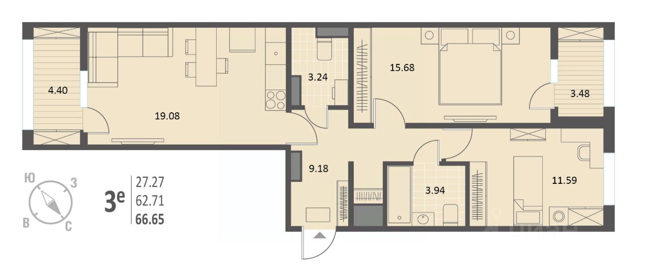 Общая площадь66,65 м2