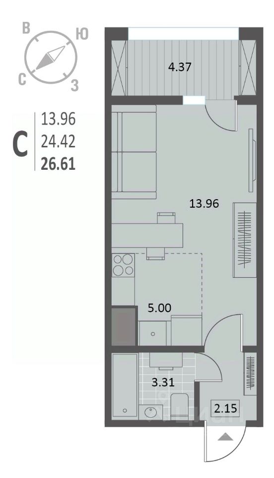 Общая площадь26,61 м2
