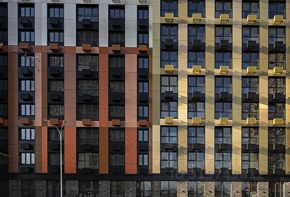 О ПРОЕКТЕ Проект представляет собой 4-секционный дом переменной этажности от 12 до 18 этажей. В облицовке фасада используются тщательно подобранные композитные алюминиевые панели 18 оттенков, формирующие динамичный неповторимый визуальный облик здания. Для сохранения рисунка фасада будут установлены корзины для кондиционеров для каждой комнаты.