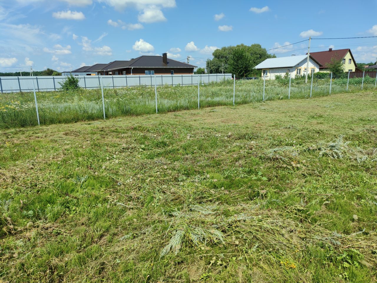 Участок правильной прямоугольной формы (50*30 метров), ровный, сухой, расположен на возвышенности. По трем сторонам участка установлен забор. Оформлено электричество (мощность 15 кВт с возможностью увеличения). По границе соседнего участка проходит газовая труба.