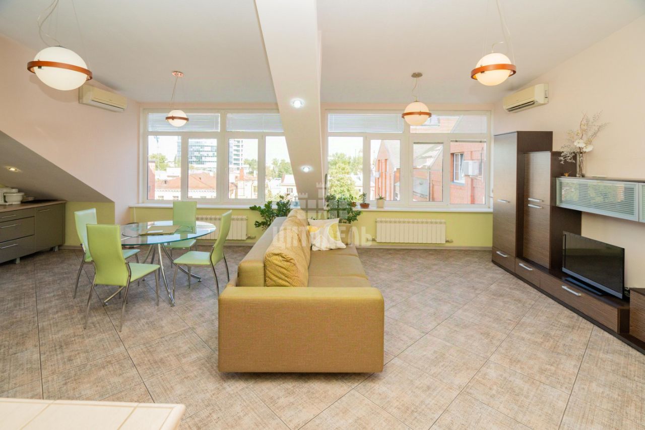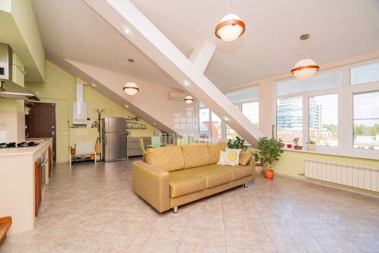 Арт. 111922035 Продаётся шикарная квартира в кирпичном доме в самом центре города! В пешей доступности: кафе, рестораны, театры, магазины, школы N28, N58, несколько остановок транспорта. Все рядом и при этом, тихий закрытый двор, ухоженная территория, есть место для парковки машин. В квартире интересная планировка: большая гостиная с кухонной зоной и антресолью и просторная спальня, гостевой санузел и ванная комната с домашней сауной, помещение подходящее для гардеробной. Квартира с индивидуальным газовым отоплением, своё ТСЖ (небольшие коммунальные платежи), установлены два кондиционера, полы с подогревом, остаётся кухня с встроенной техникой и частично мебель.