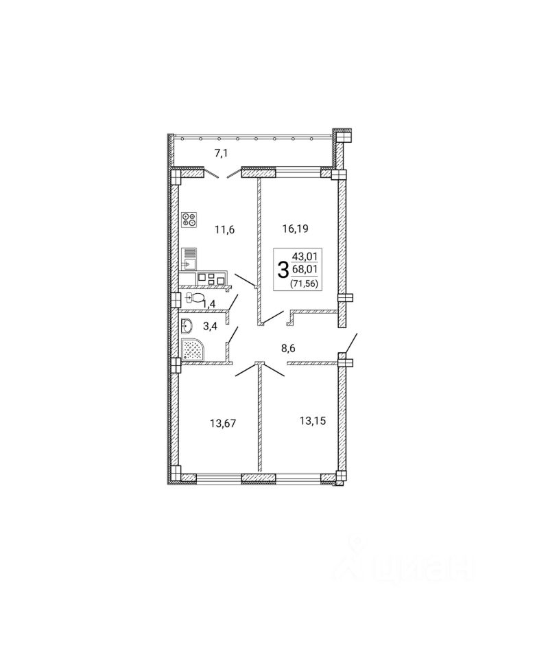 Общая площадь71,56 м2