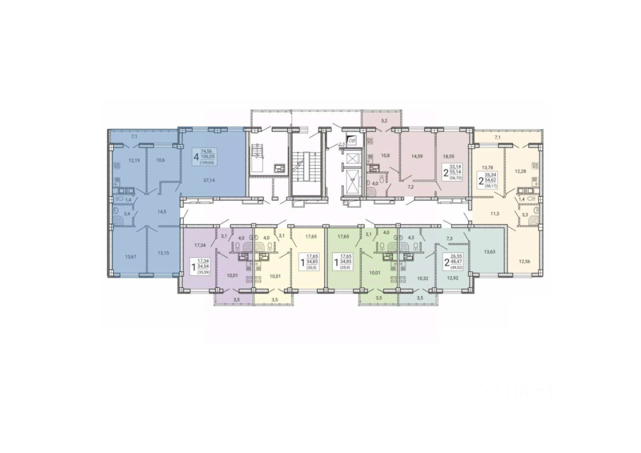 Квартиры от 35 до 109 кв.м.
