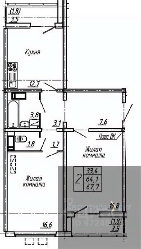 Общая площадь67,7 м2