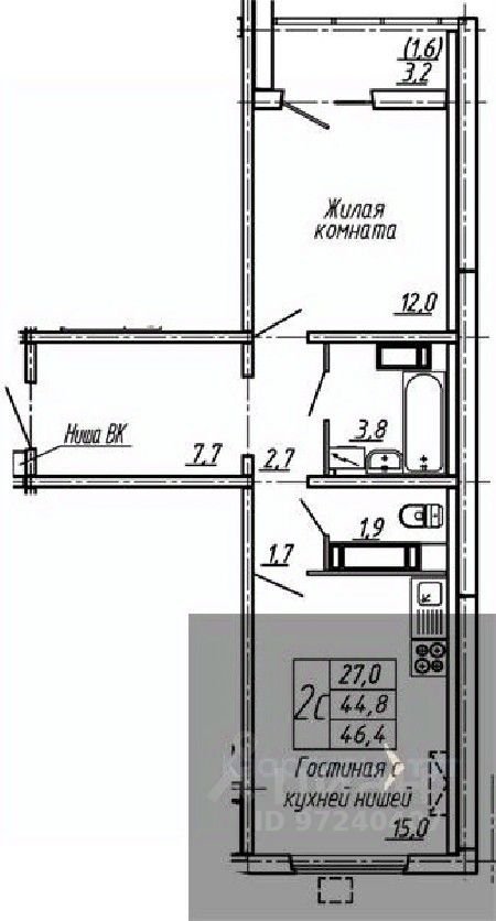 Общая площадь46,4 м2