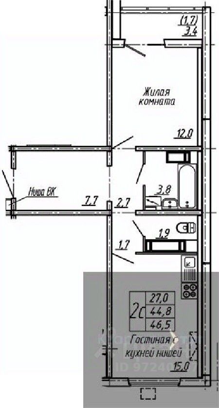 Общая площадь46,5 м2