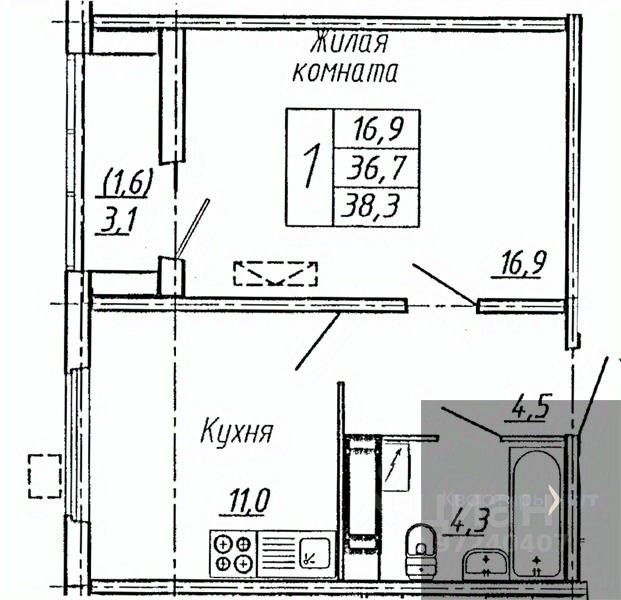 Жилая площадь16,9 м2