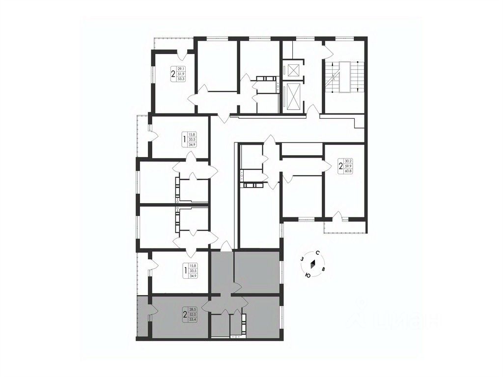 Общая площадь53,4 м2