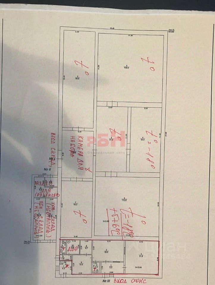 6 камер площадью 500 м² с температурой от +6 до - 18 градусов, с возможностью настройки в каждой камере своей температуры Помещение расположено рядом с автодорогой Красная линия Охраняемая территория Асфальтированная площадка Имеется пандус для разгрузки Возможна разгрузка фур Своя котельная Имеются помещения для размещения офиса площадью 20 и 31 м² и бытовые помещения
