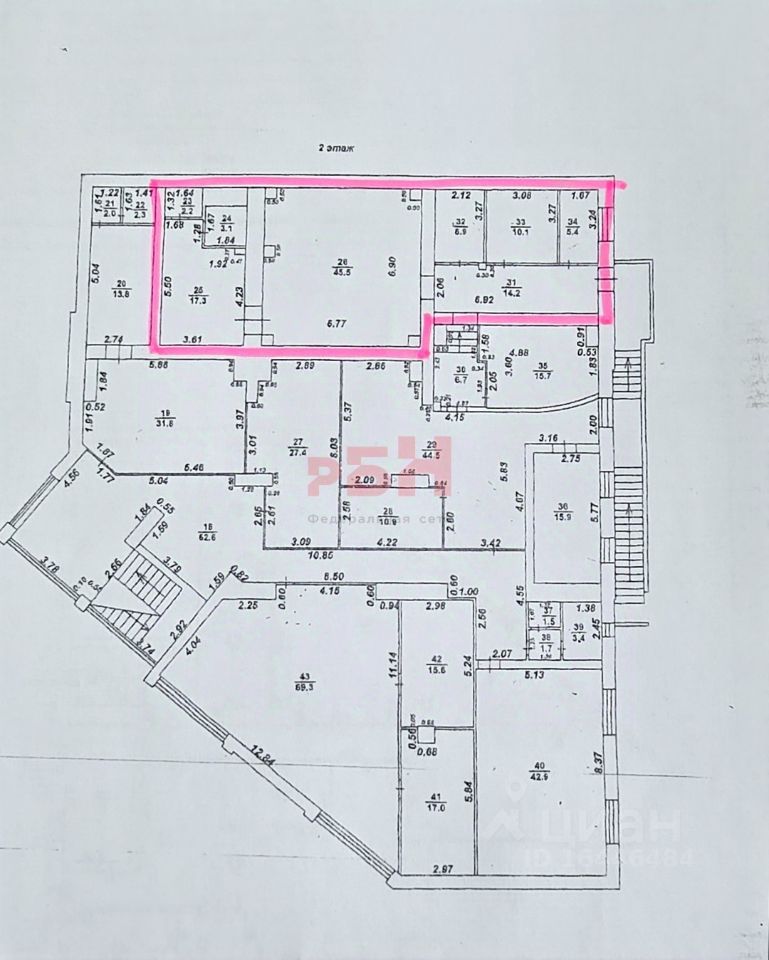 - Помещение разделено на 3 кабинета