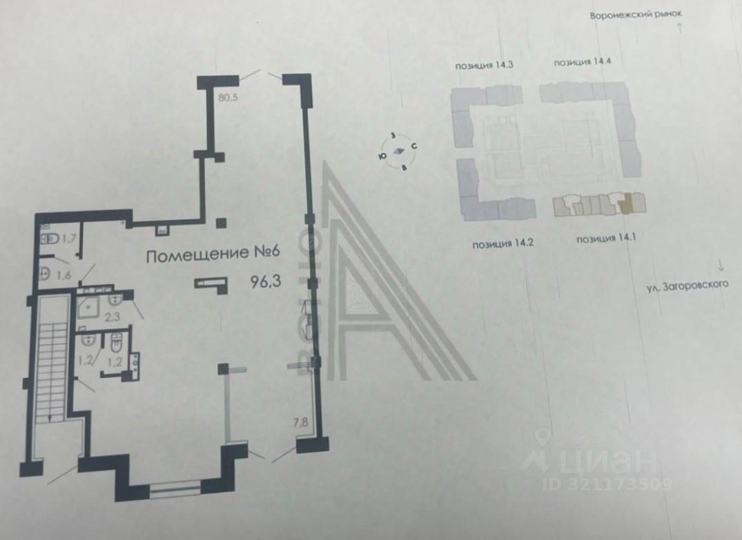 Доступные площади к аренде : 96,3 кв.м