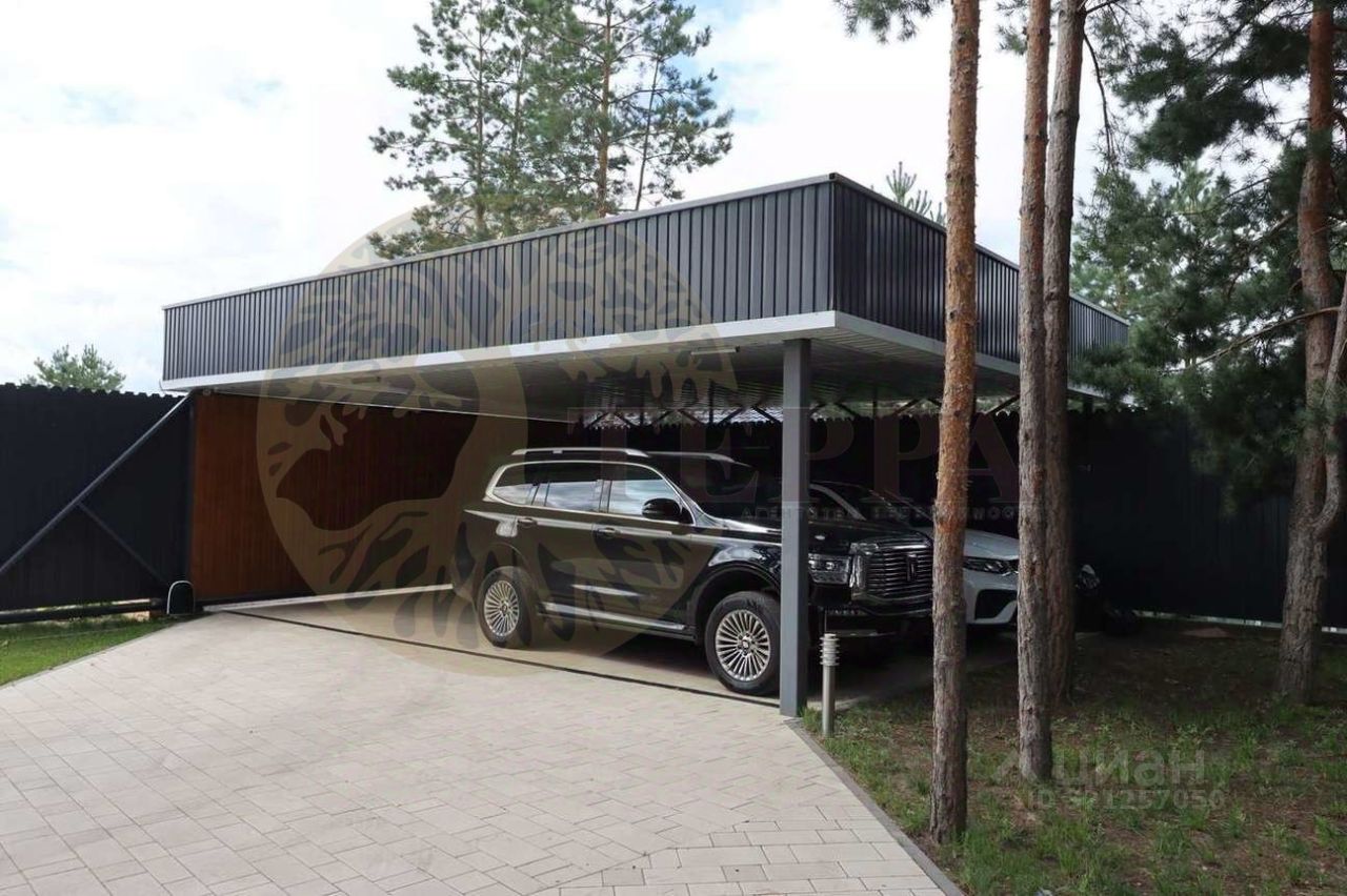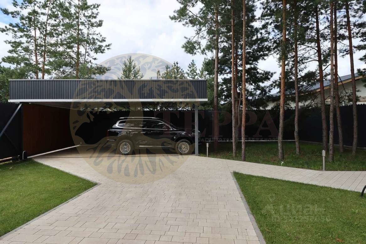 , гараж с автоматическими воротами, подсобное помещение, крытый навес на 2 автомобиля, на участке растут сосны, плодовые деревья, малина, ежевика.