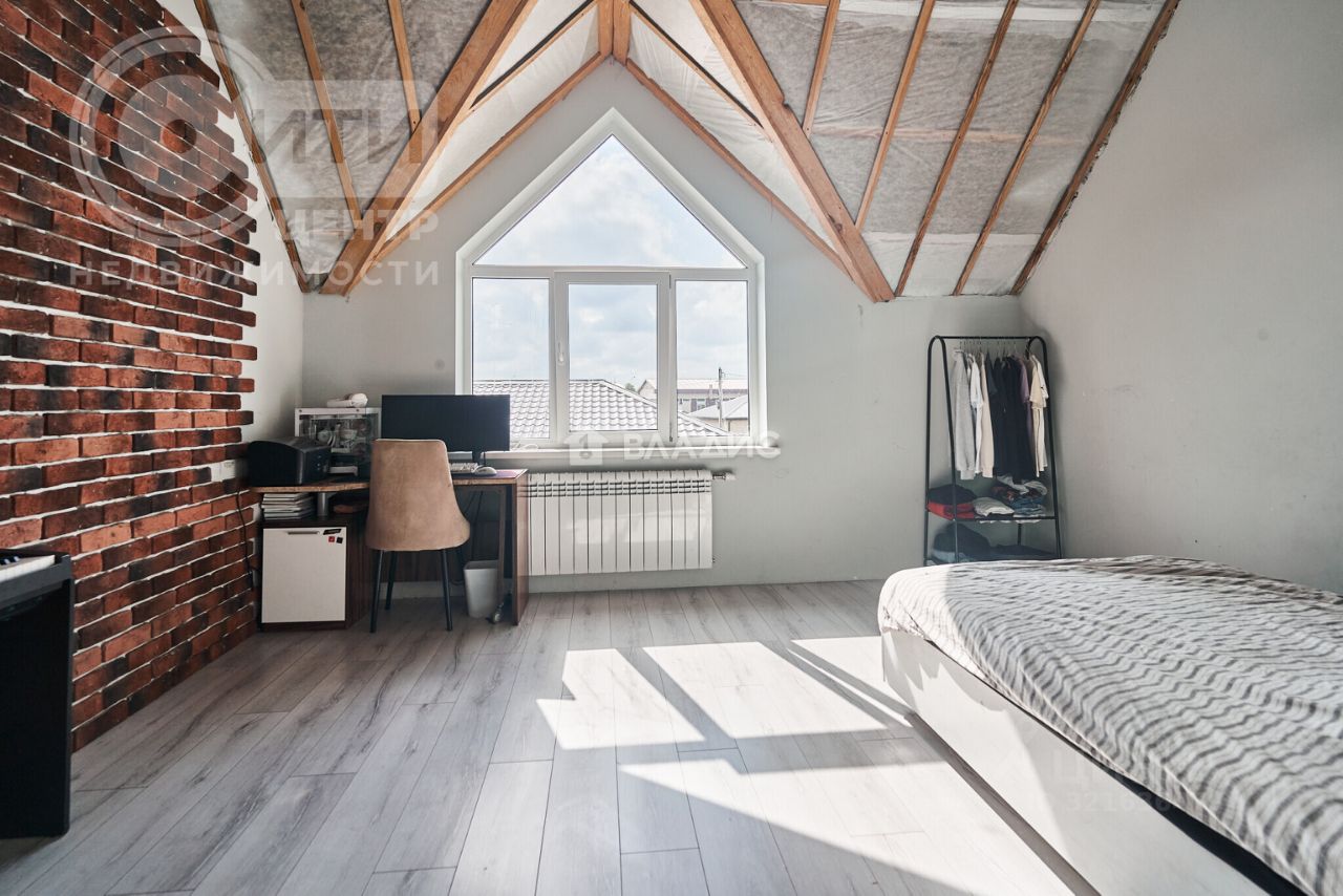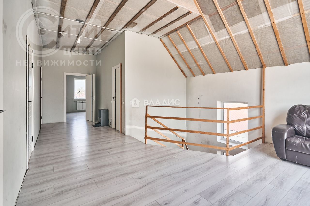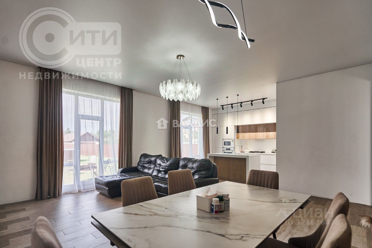 Дом построен в 2016 году из блочного материала, общая площадь составляет 195,3 кв. м, жилая — 68 кв. м. Высота потолков — 3 метра, что создаёт ощущение простора и свободы.