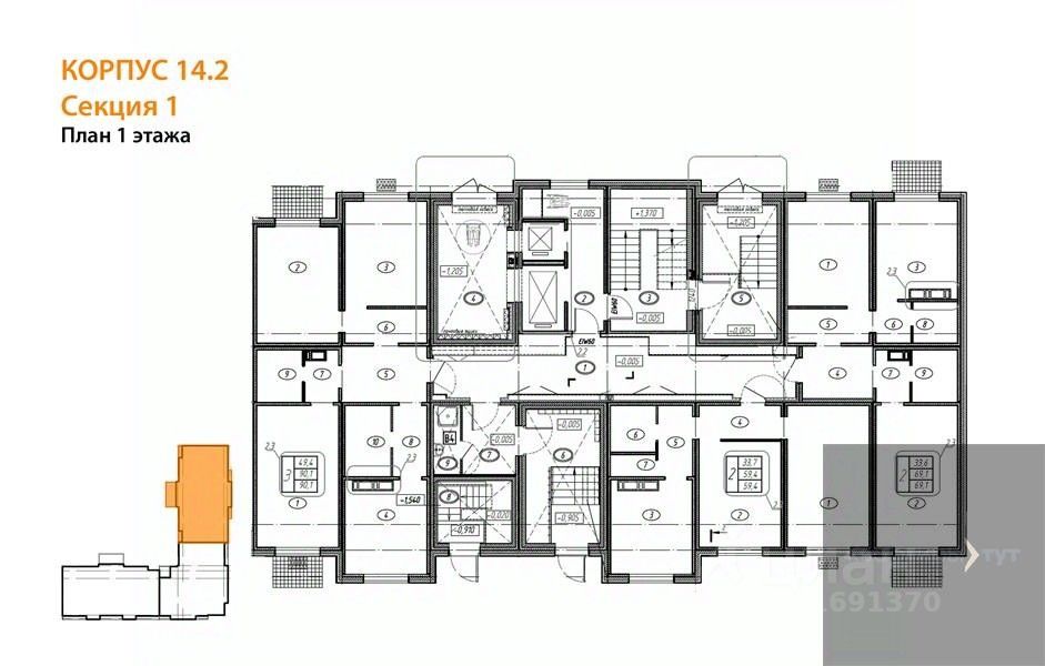 Квартира: 2 к 69,10 кв.м., 1 этаж в комплексе Яблоневые сады, 1 очередь, корп.14.2, сдача: 3кв. , этажей: 17, адрес Воронеж г., Загоровского ул., , Застройщик: ВЫБОР.