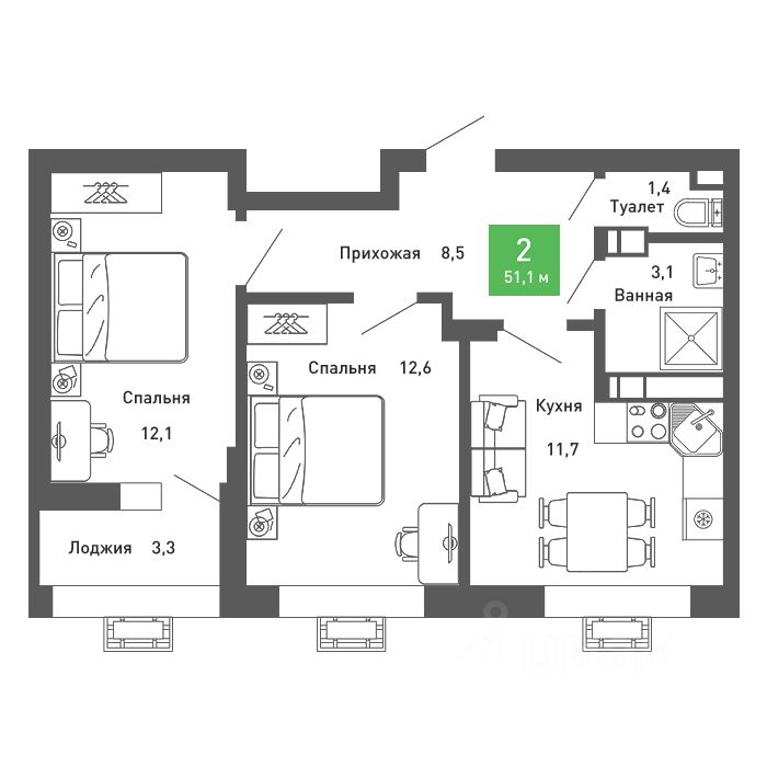 Продаётся 2-комнатная квартира в строящемся доме (3 этап), срок сдачи: III-кв. 2028, общей площадью 51 кв.м., на 6 этаже. ЖК ''Ключи CLUB'' - комплекс домов разной этажности (9-15 этажей), расположенный в одном из самых быстро развивающихся районов Воронеж. Поблизости есть несколько детских садов, школ, спортивных, досуговых и образовательных центров, поликлиника, магазины, салоны красоты. Объездная дорога и развитая транспортная сеть позволяет без пробок добраться в любую часть города в течение 15 минут.