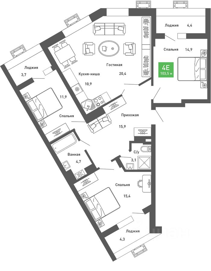 Продаётся 4-комнатная квартира в строящемся доме (3 этап), срок сдачи: III-кв. 2028, общей площадью 103.5 кв.м., на 5 этаже. ЖК ''Ключи CLUB'' - комплекс домов разной этажности (9-15 этажей), расположенный в одном из самых быстро развивающихся районов Воронеж. Поблизости есть несколько детских садов, школ, спортивных, досуговых и образовательных центров, поликлиника, магазины, салоны красоты. Объездная дорога и развитая транспортная сеть позволяет без пробок добраться в любую часть города в течение 15 минут.