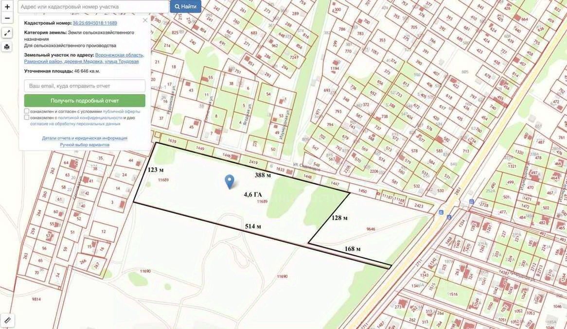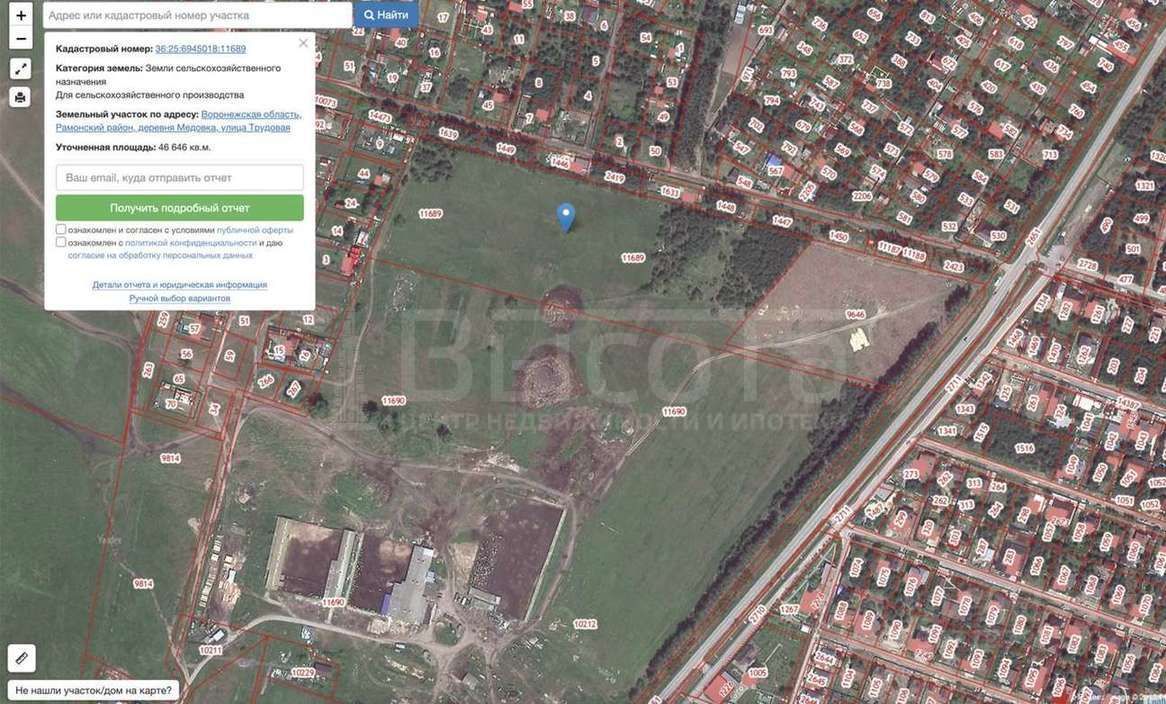 В продаже массив площадью 4,6 ГА. Сейчас такой ценник за ''Категория земель: Земли сельскохозяйственного назначения. Для сельскохозяйственного производства''. Но в ближайшее время ценник поднимется так как он будет введен в земли поселений и статус ИЖС(заявление уже написано). В пяти минутах на машине по асфальту есть магазины Пятерочка и Магнит. Напротив ресторан Дача.