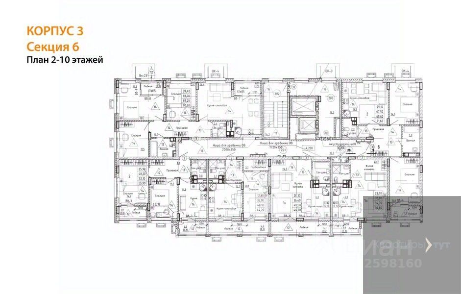 Квартира: 2 к 52,10 кв.м., 2 этаж в комплексе Ключи CLUB, 3 очередь, корп.3, сдача: 3кв. , этажей: 14, адрес Воронеж г., Остужева ул., д. 52/5, Застройщик: Новый код.