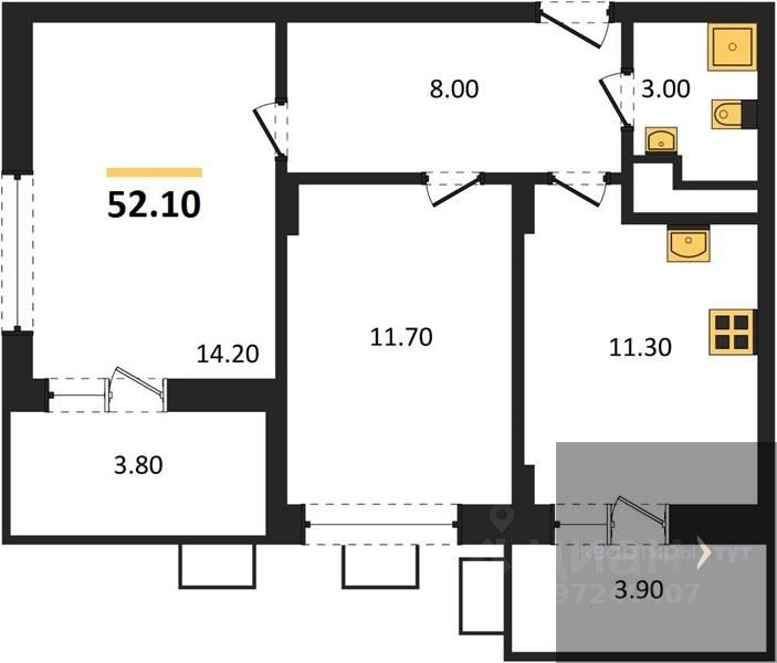 Общая площадь52,1 м2