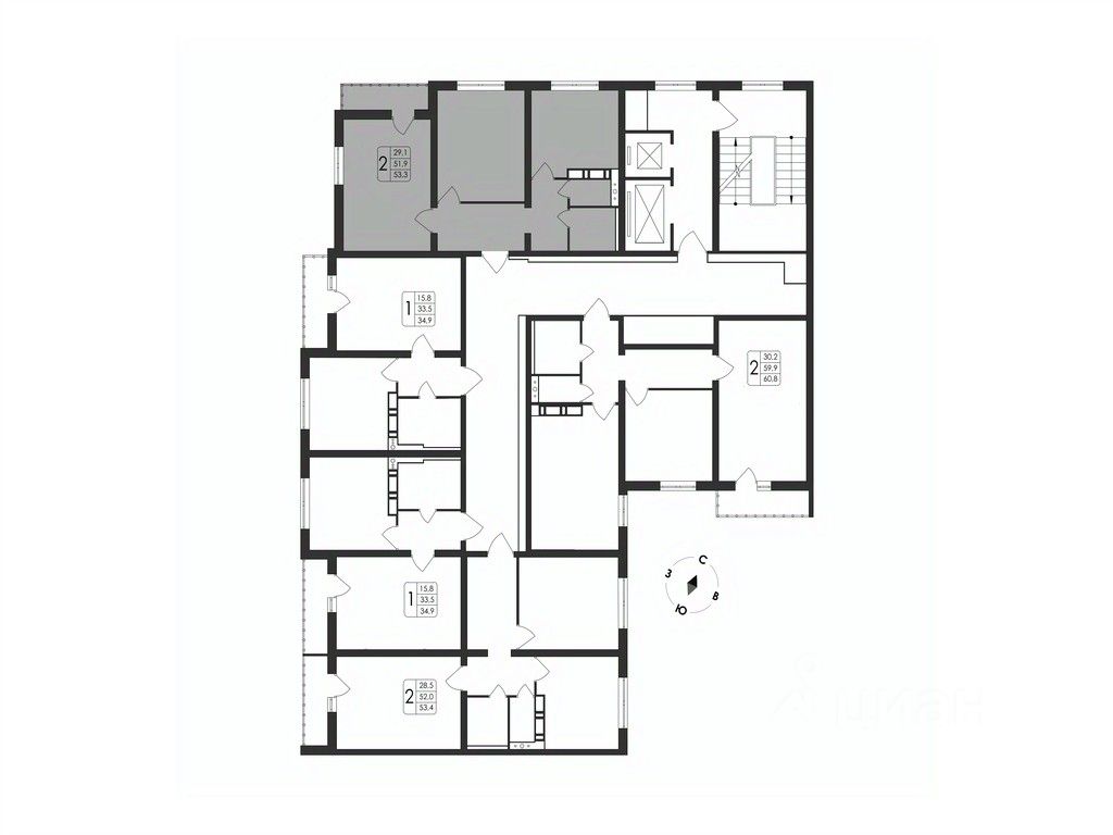 Общая площадь53,3 м2