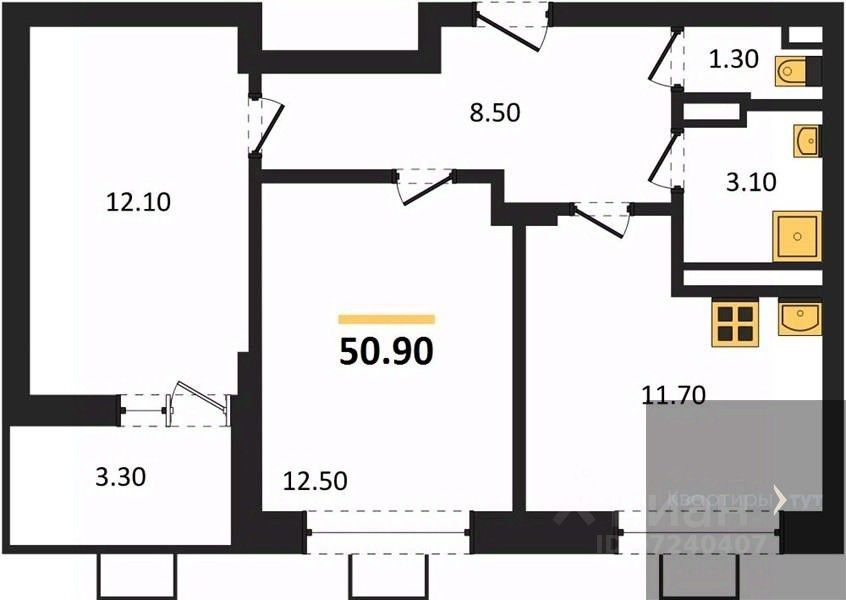 Общая площадь50,9 м2