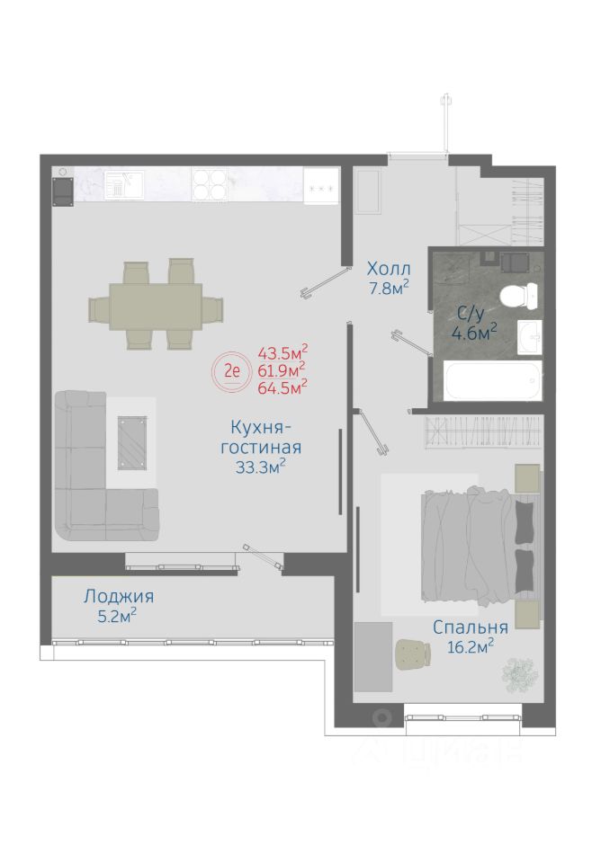 Общая площадь64,5 м2