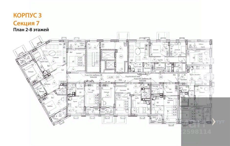 Квартира: 2 к 56,70 кв.м., 2 этаж в комплексе Ключи CLUB, 3 очередь, корп.3, сдача: 3кв. , этажей: 14, адрес Воронеж г., Остужева ул., д. 52/5, Застройщик: Новый код.