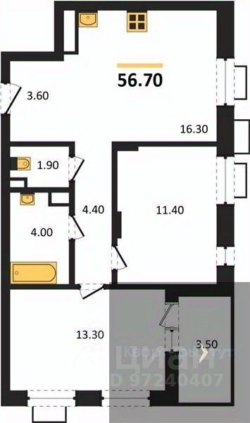 Общая площадь56,7 м2