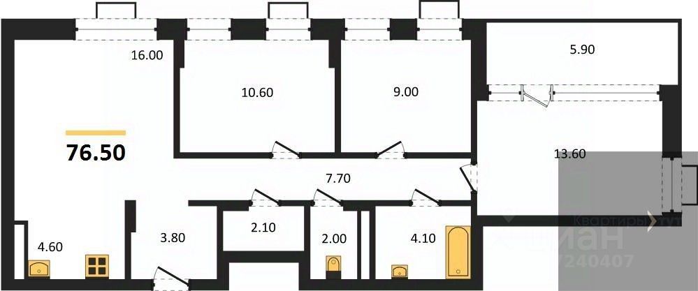 Общая площадь76,5 м2