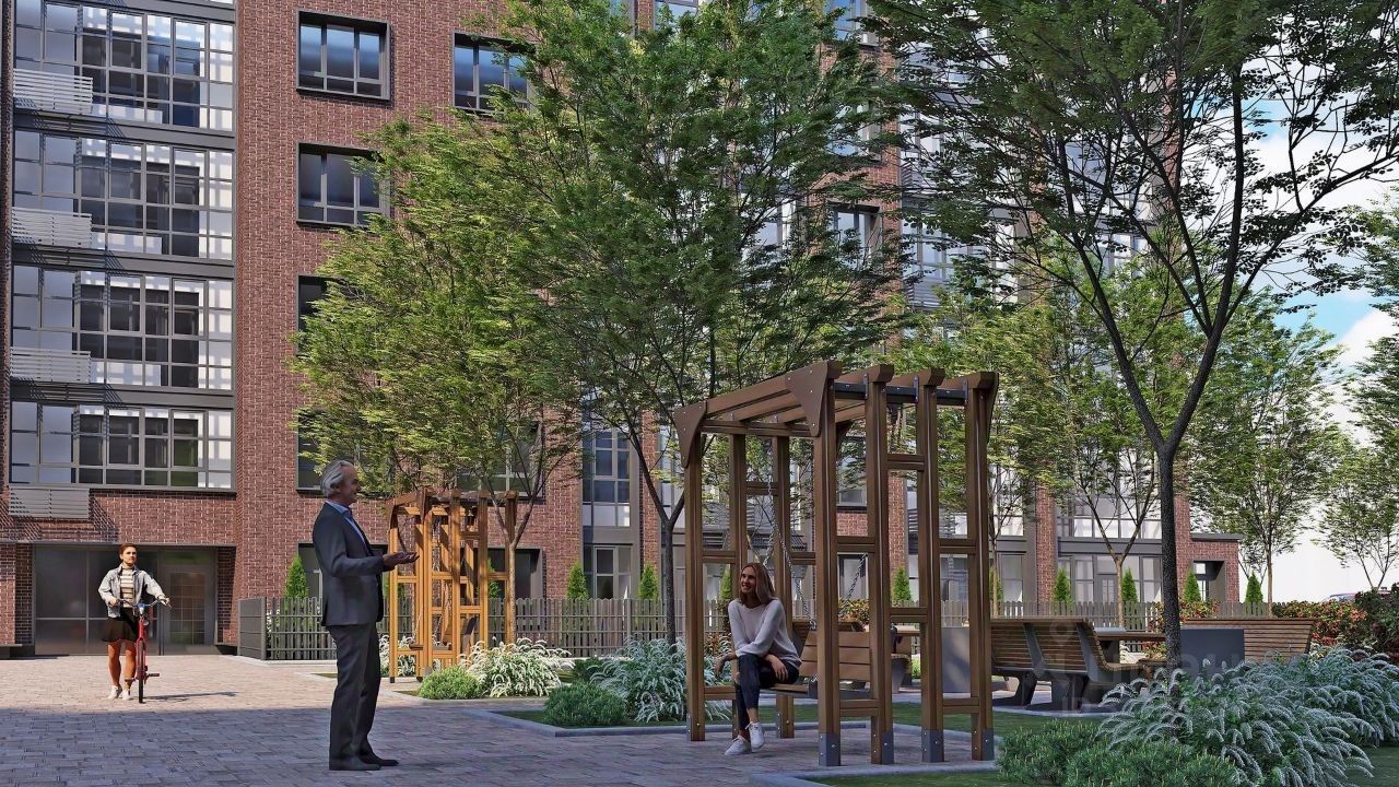 Школа на 825 мест Детский сад на 450 мест Площадки для выгула собак Внутренний двор без машин Бесплатный спортзал в каждом доме Игровые комнаты для детей и взрослых Заправки для электромобилей Велодорожки Территория микрорайона Разнообразные планировки и отделка Квартиры с террасами
