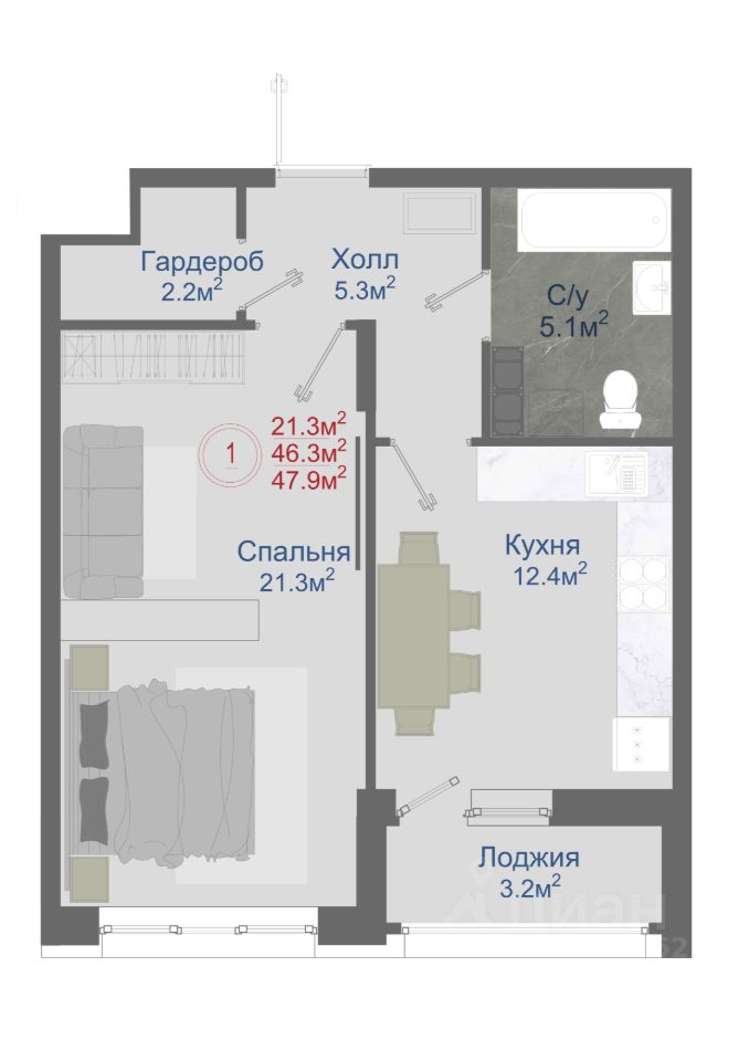 Общая площадь47,9 м2