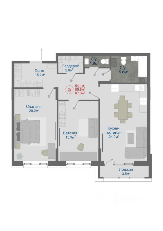Общая площадь87,6 м2