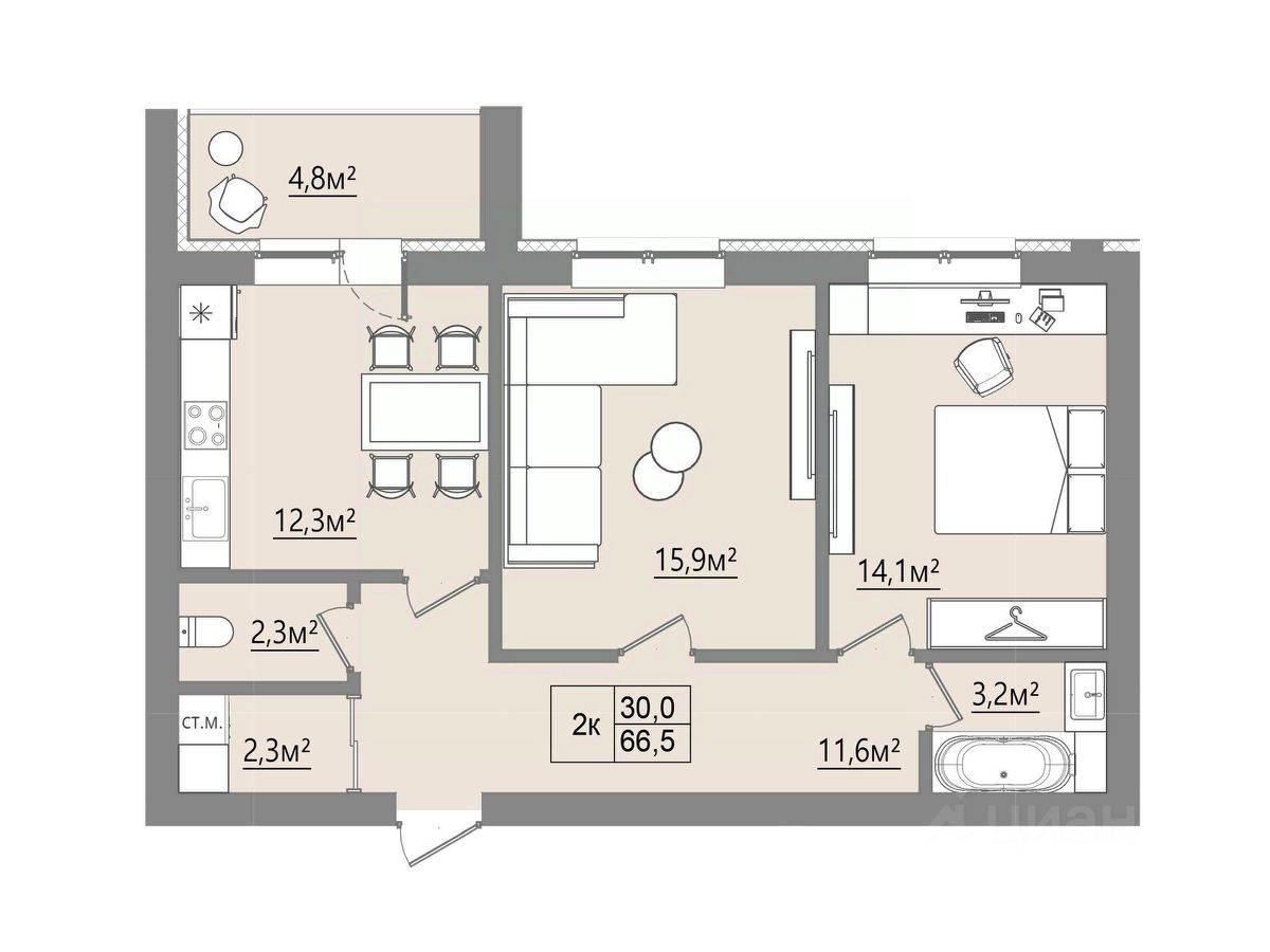 Продаётся 2-комнатная квартира в строящемся доме (Дом 5), срок сдачи: IV-кв. 2025, общей площадью 64.1 кв.м., на 4 этаже. Новый жилой комплекс ''Микрорайон Благодатный'' от Специализированного застройщика ''ВИТ-СТРОЙ'' расположен по адресу: Воронежская обл., с. Ямное, по ул. Графа Орлова.