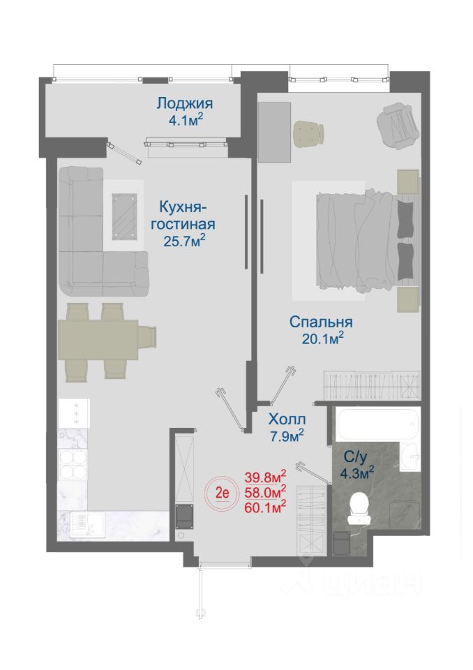 Общая площадь60,1 м2