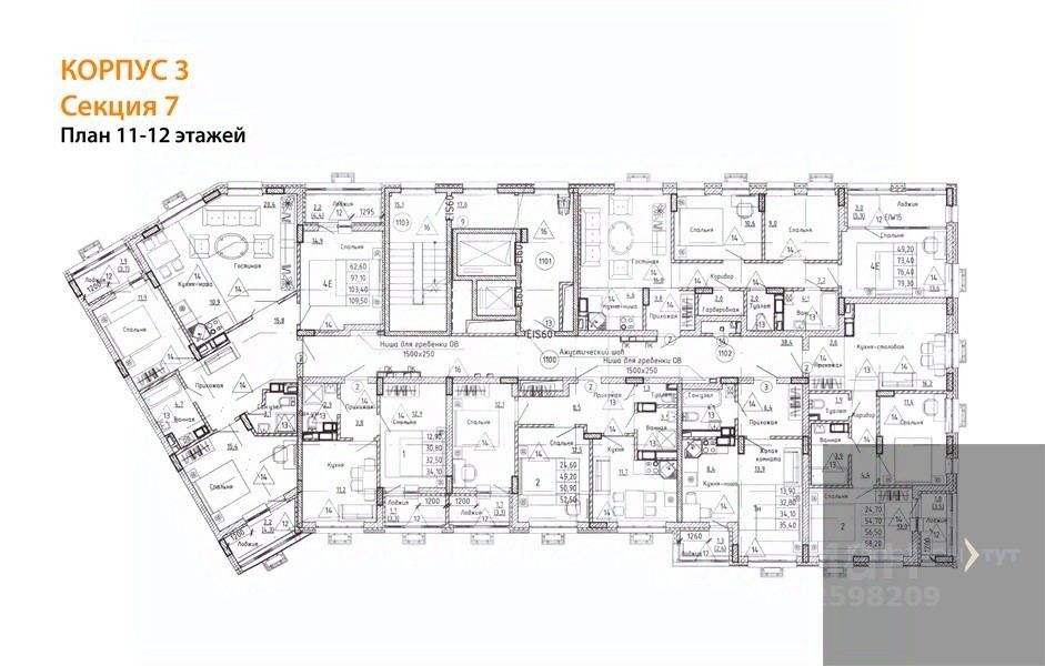 Квартира: 3 к 76,40 кв.м., 12 этаж в комплексе Ключи CLUB, 3 очередь, корп.3, сдача: 3кв. , этажей: 14, адрес Воронеж г., Остужева ул., д. 52/5, Застройщик: Новый код.