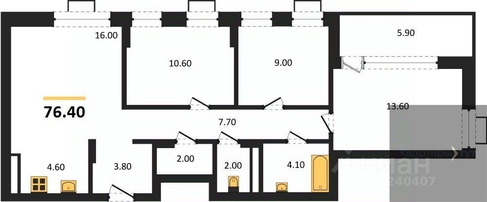 Общая площадь76,4 м2