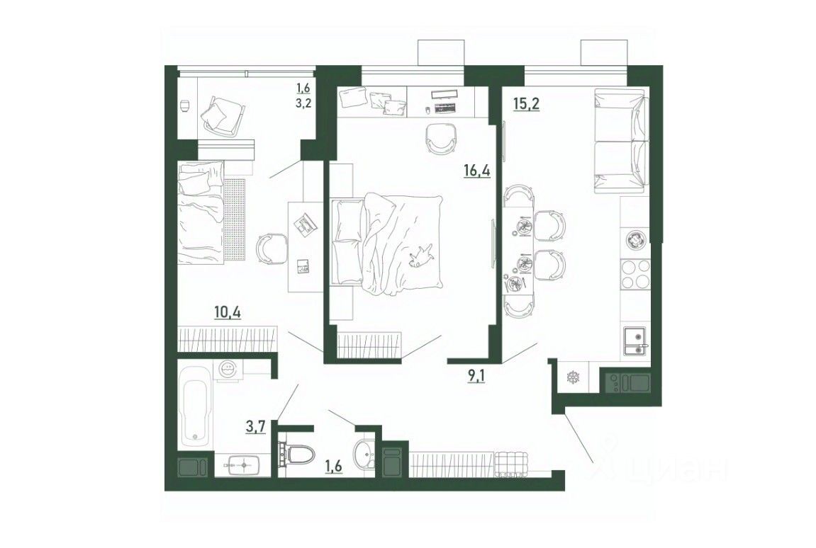 Жилая площадь26,8 м2