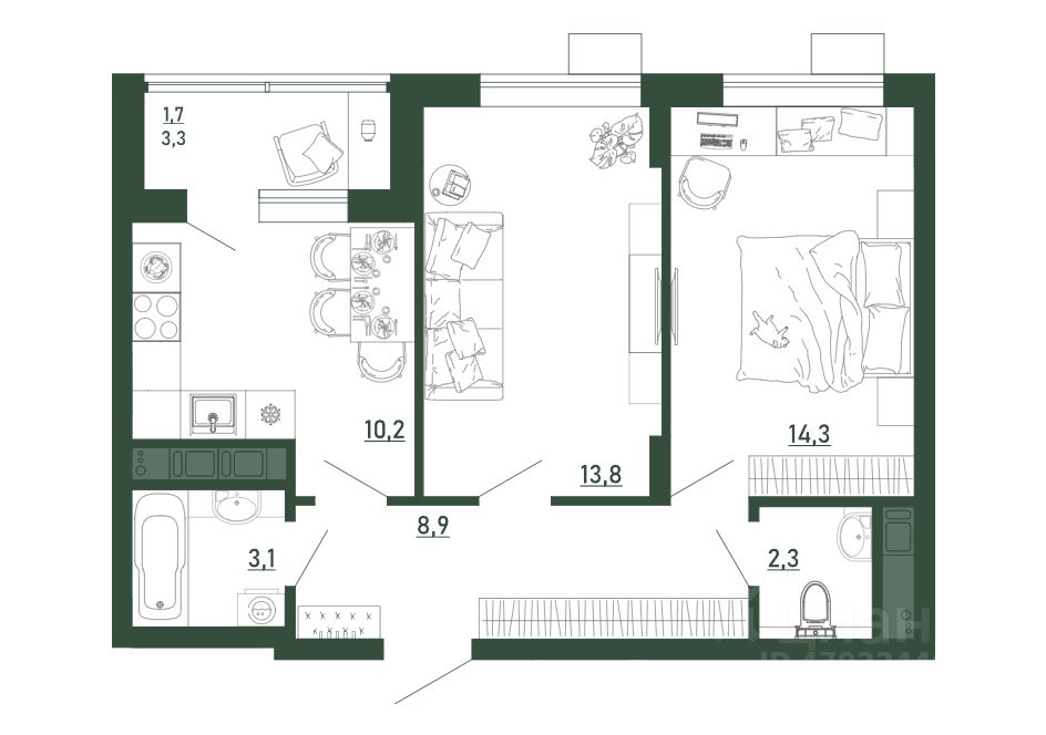 Общая площадь54,4 м2