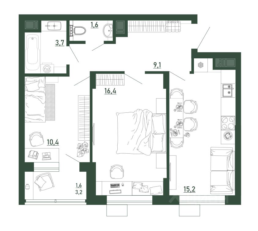 Жилая площадь26,8 м2