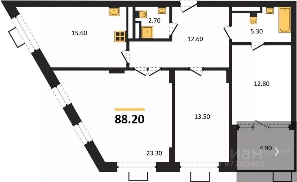 Квартира: 3 к 88,20 кв.м., 8 этаж в комплексе Ключи CLUB, 2 очередь, корп.2, сдача: 4кв. , этажей: 14, адрес Воронеж г., Остужева ул., д. 52/5, Застройщик: Новый код.