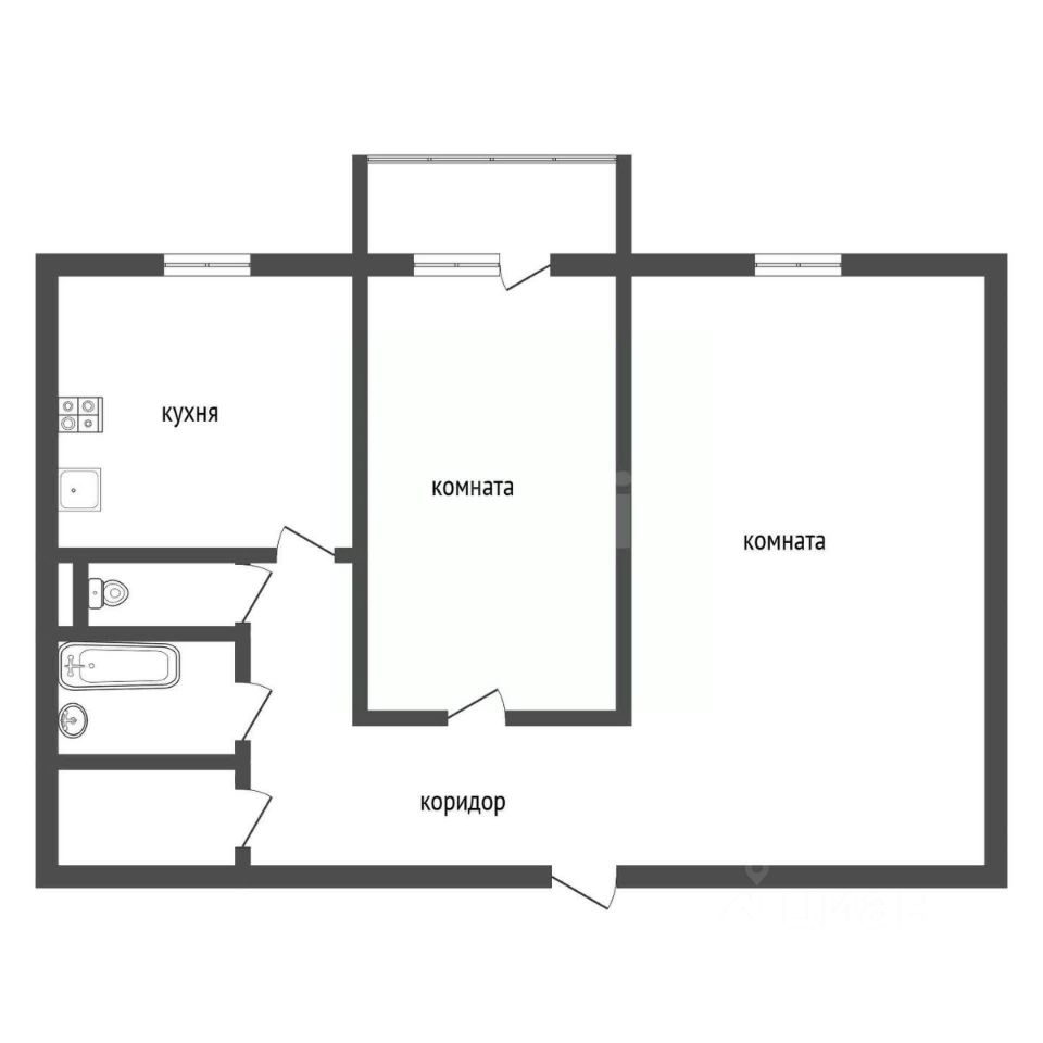Площадь квартиры - 53,8 м.кв. Комнаты изолированные, правильной прямоугольной формы. Кухня - 8,5 м.кв. Комната - 19 м.кв. Комната - 12 м.кв. Ванная раздельная с санузлом, в кафеле. Лоджия в стекле, выход с комнаты.
