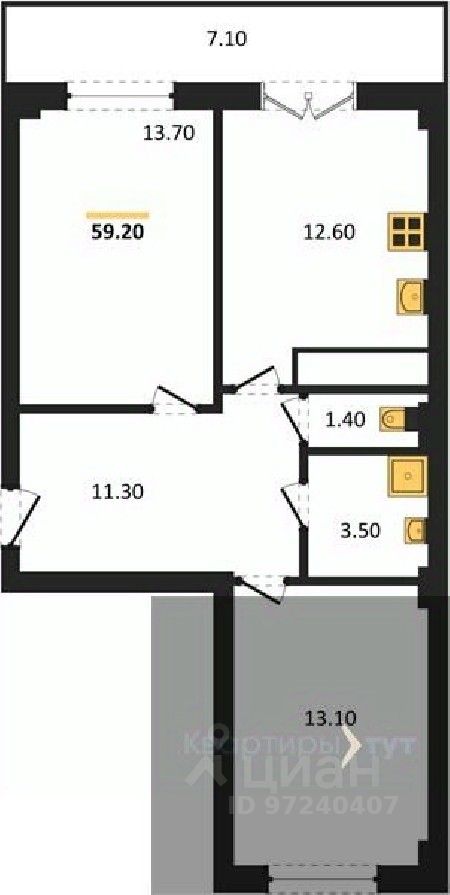 Квартира: 2 к 59,20 кв.м., 7 этаж в комплексе Ю, 2 очередь, корп.2, сдача: 1кв. , этажей: 15, адрес Воронеж г., Цимлянская ул., д. 10в, Застройщик: Еврострой.