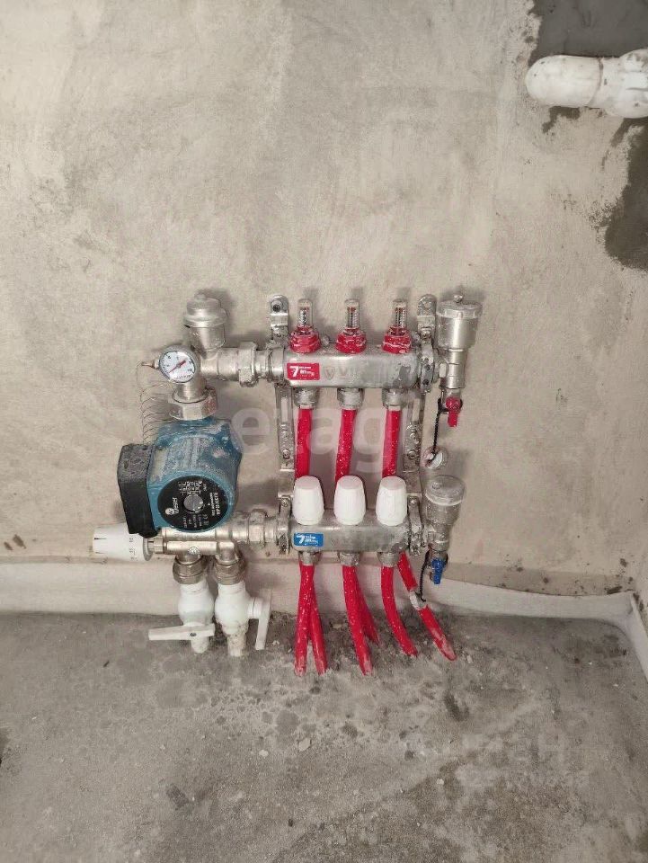 Есть топочная , где установлен надежный двухконтурный газовый котел Ferolli с дистанционным управлением , выведена разводка по воде.