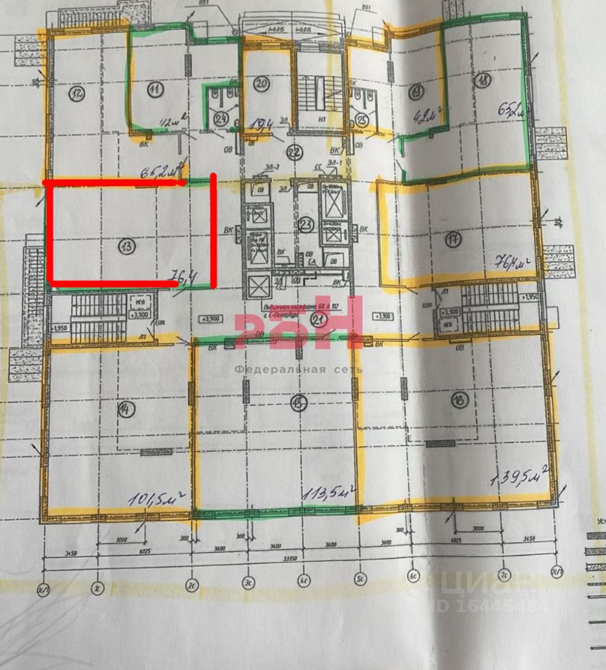 -возможно разделить на 2 кабинета ( 38 м²)