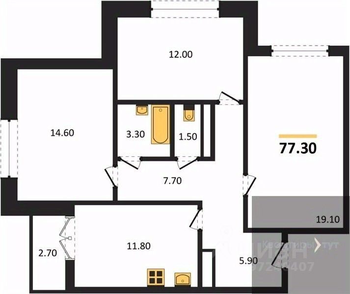 Общая площадь76,9 м2