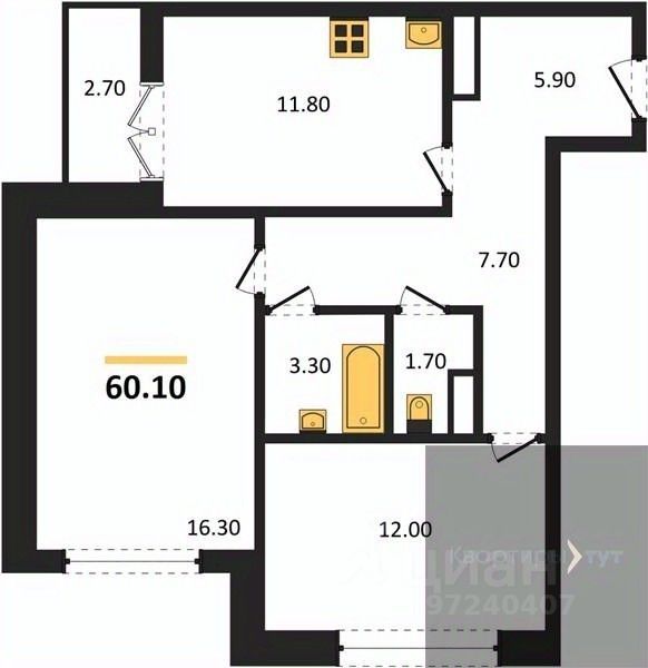 Общая площадь60 м2