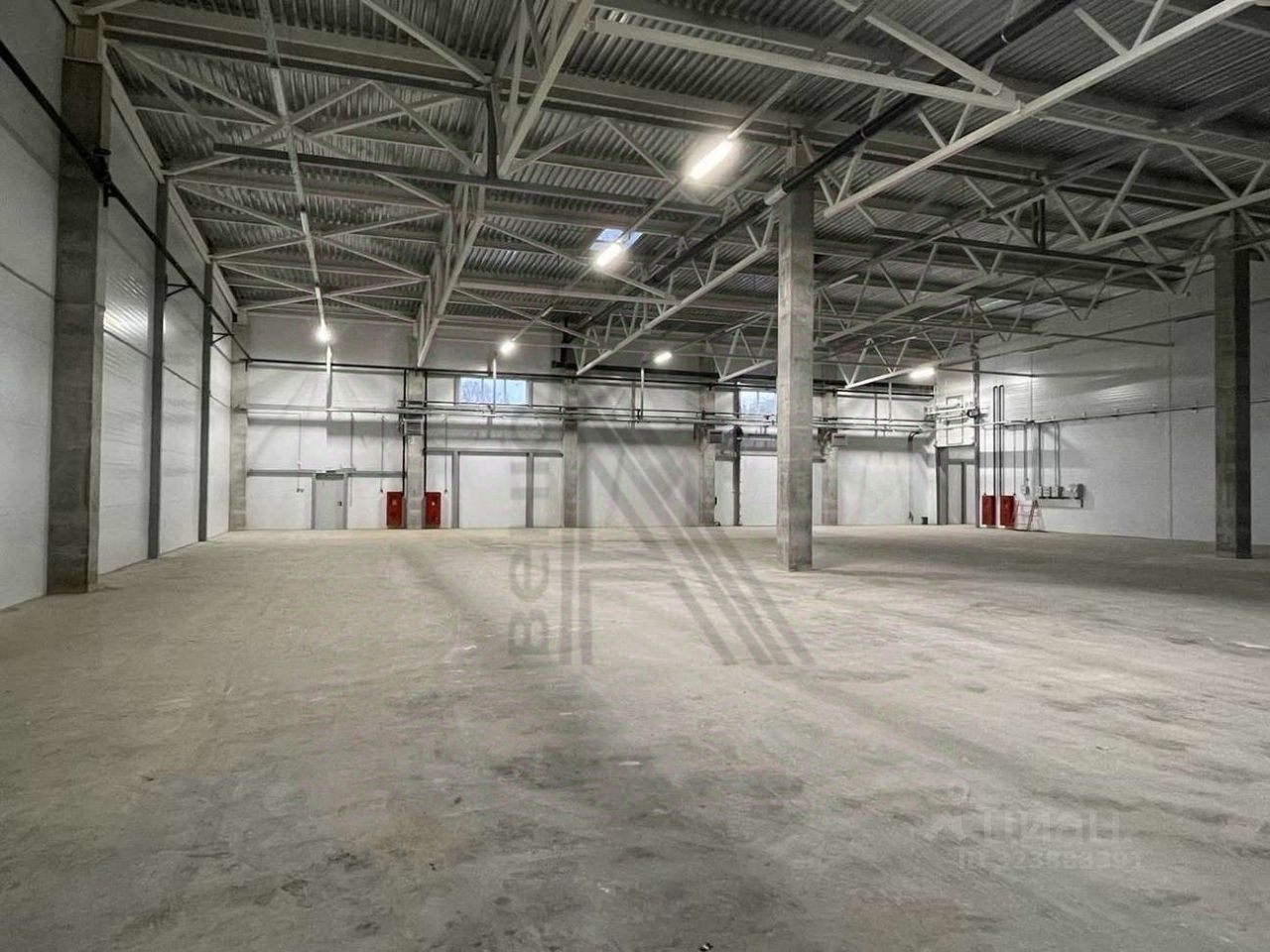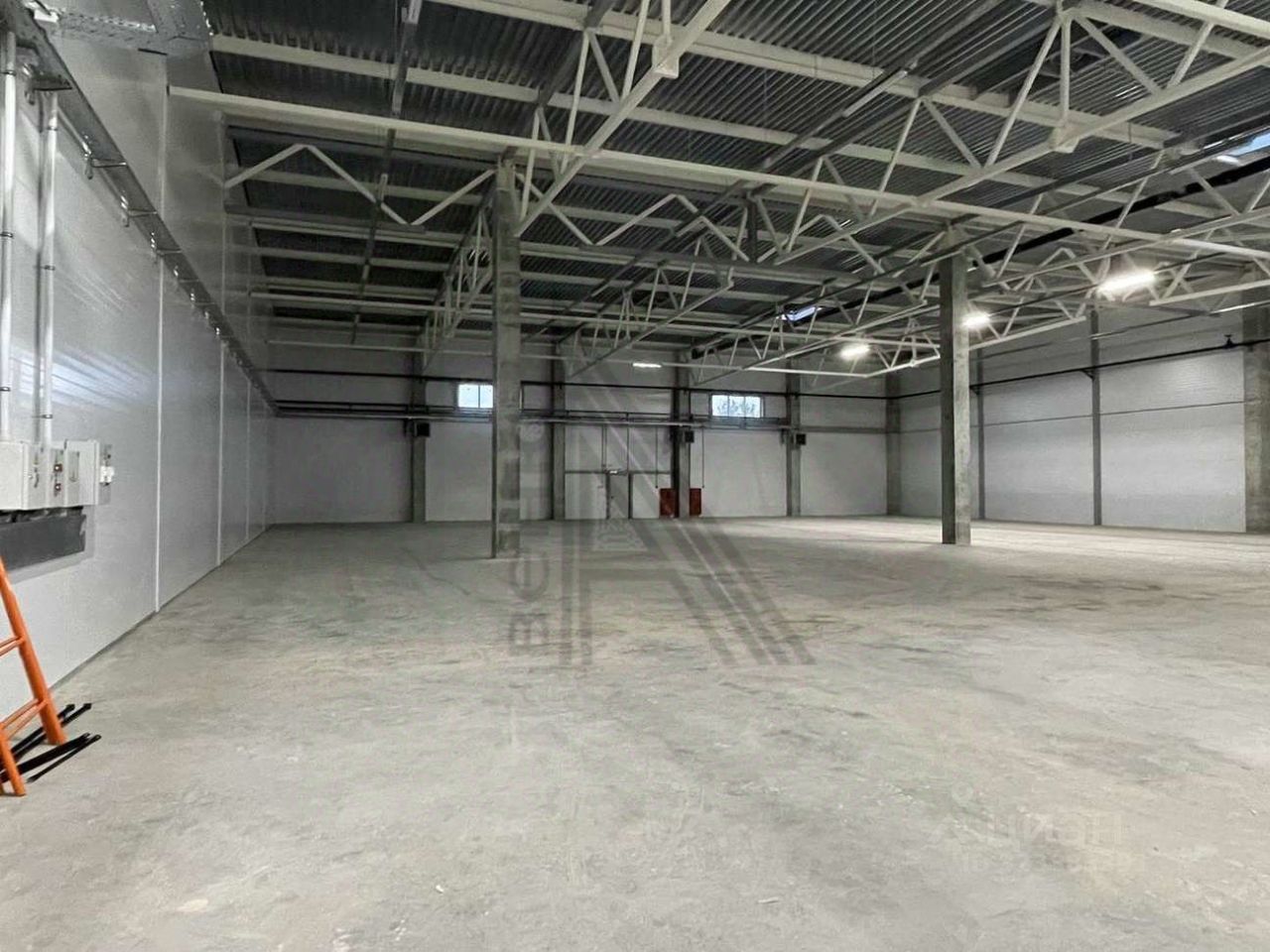 Высота потолка (до низа фермы): 6 метров, шаг колонн 12*18 метров. Пол бетонный (финишное покрытие - Топпинг), допустимая нагрузка на пол 5 т/кв.м. Складская зона общей площадью 3 058,00 кв.