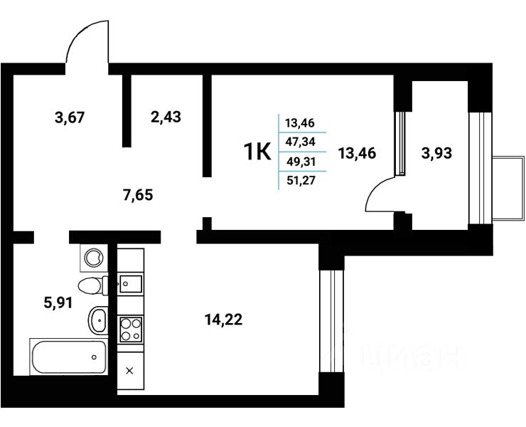 Продаётся 1-комнатная квартира в сданном доме (Чуева, 7 (2 этап) ), срок сдачи: III-кв. 2025, общей площадью 49.31 кв.м., на 17 этаже. Новый жилой комплекс ''Z-town'' от Специализированного застройщика ''Новый Код'' расположен на набережной Чуева в г. Воронеж.