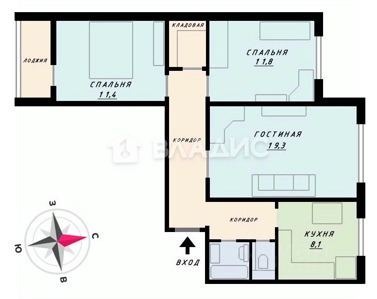 Удобная планировка, есть лоджия.